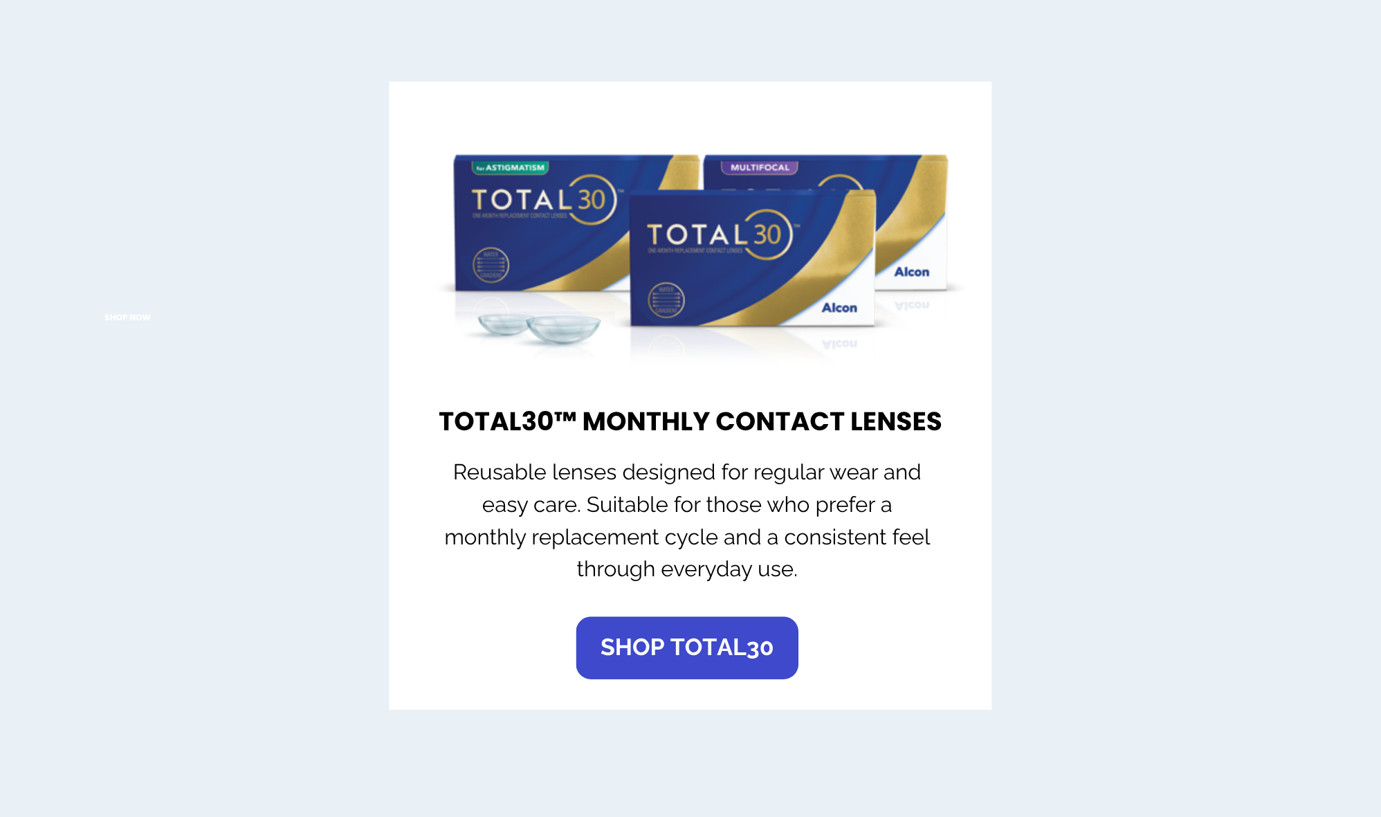 - At least 2 lenses for Total30 for Astigmatism or Total30 Multifocal (3-pack)