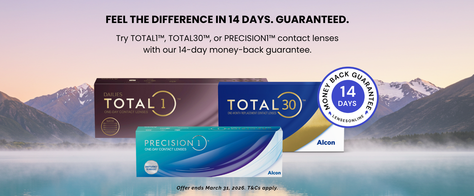 Try Dailies Total 1, Precision 1 & Total30 with our 14-Day Money Back Guarantee