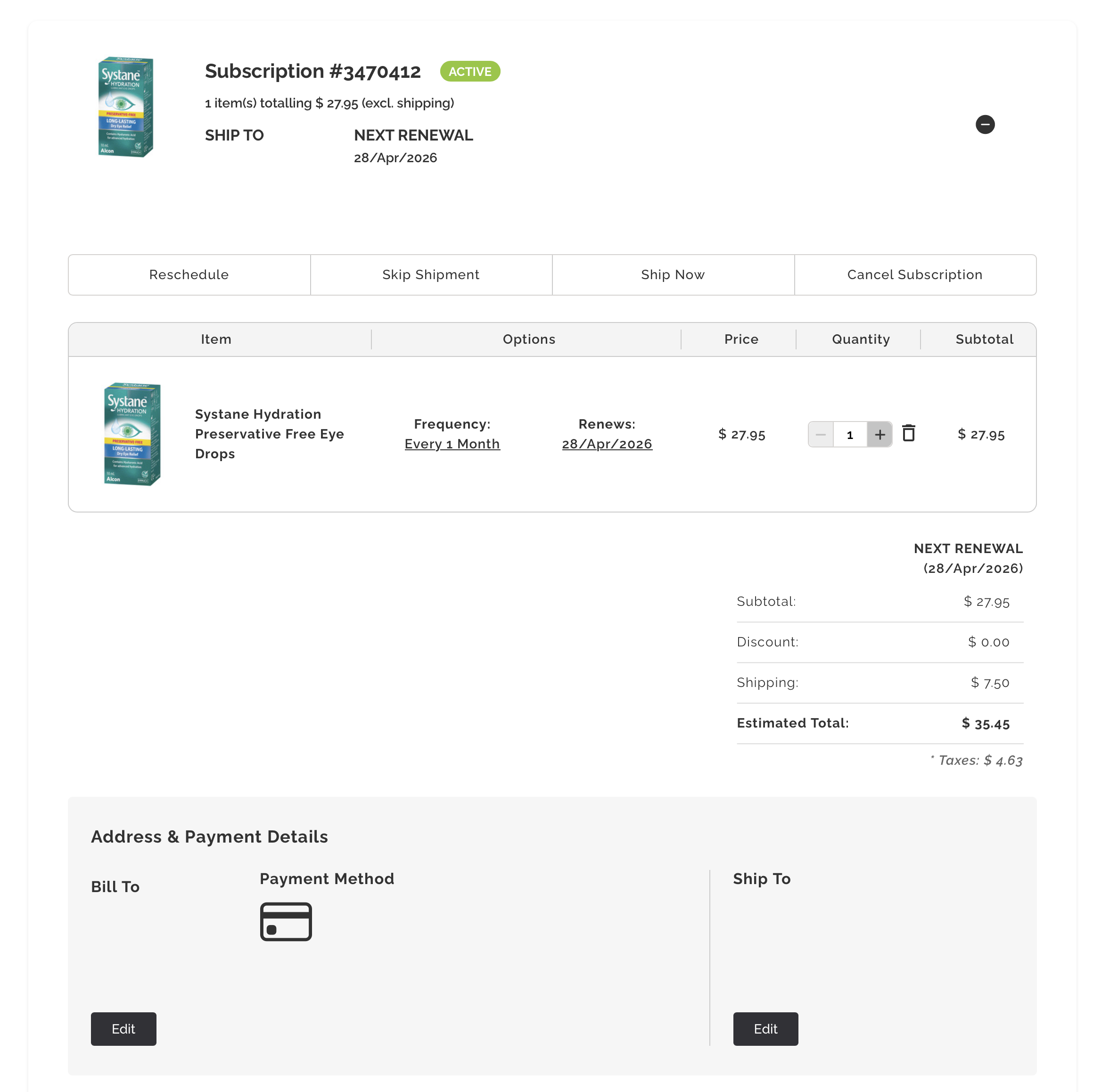 At this point, you can edit your subscription with one of the following options;