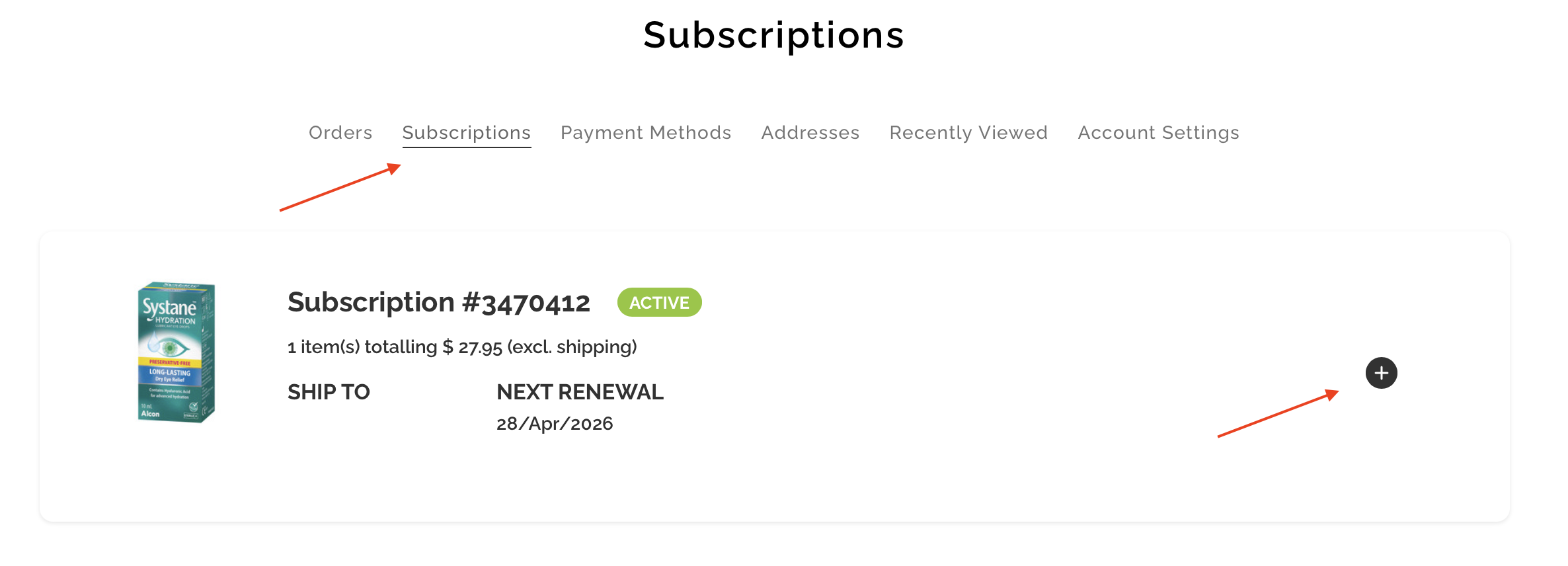 From here, you click on the subscription tab to bring up your current and historical subscriptions.